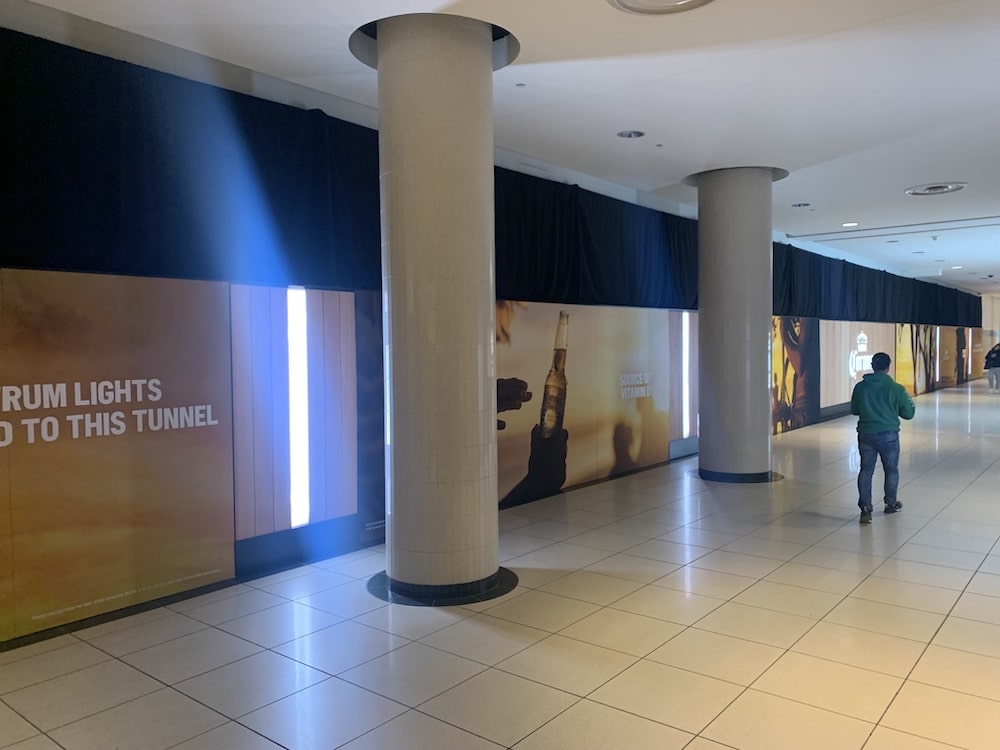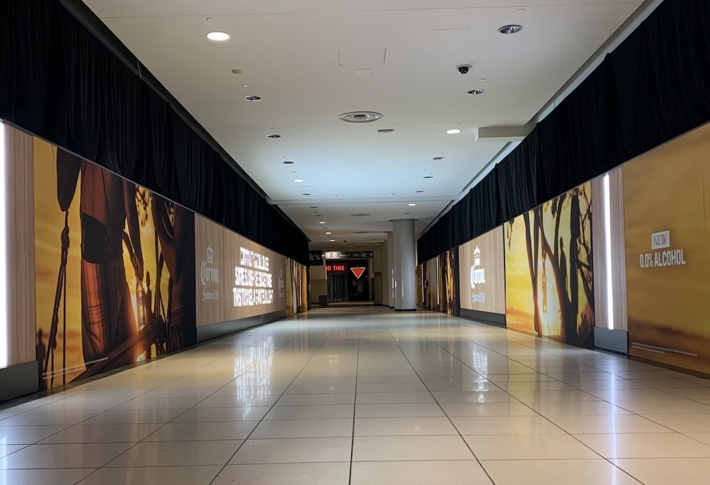 Vitamin D walkway through a high-traffic mall location with recycled woods.